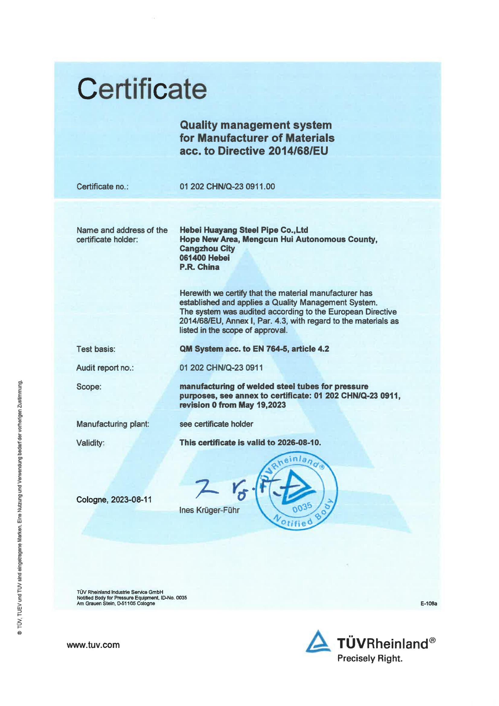 公司現有17條新型的自動化鋼管生產線,包括Φ73-660.4高頻直縫焊鋼管生產線14條、Φ406.4-Φ1422.4直縫雙面埋弧焊鋼管生產線3條,并配備有一條防腐生產線,可進行3PE、2PE、FBE、2PP、3PP防腐處理,同時還可提供鋼管深加工服務。公司擁有先進的理化實驗室,可承擔鋼管的各項物理及化學檢測與試驗。公司先后取得了ISO9001質量管理體系認證、ISO14001環境管理體系認證、ISO45001職業健康安全管理體系認證、特種設備制造許可證、API5L和API2B認證證書、歐盟CE認證、俄羅斯GOST認證、法國船級社(BV)工廠認證、科威特石油入網認證、中海油入網證、安全生產標準化二級企業等標準質量體系認證。